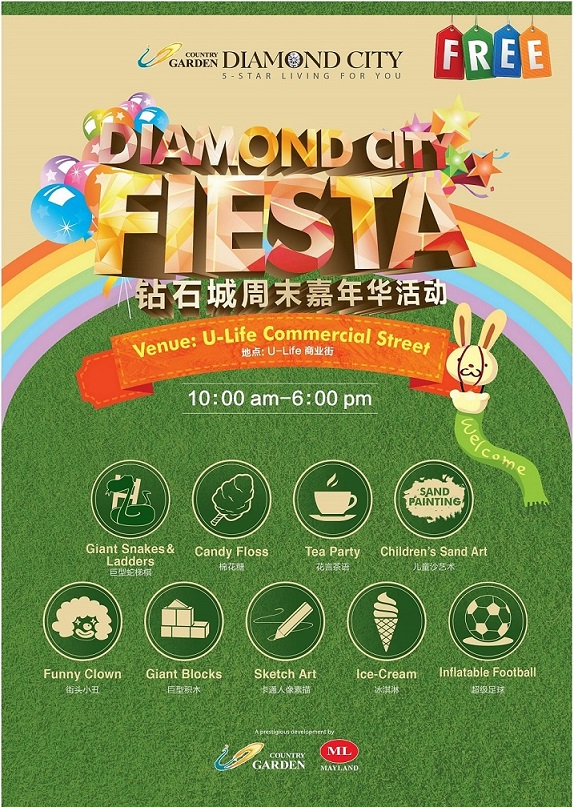 Country Garden have showcase a prestigious development and official launch of its grand opening carnival themed "Diamond City Fiesta", on June 14 and 15, 2014 at the Diamond City Phoenix Clubhouse-sales gallery. Country Garden Diamond City would like to thanks all the VIP, media partners and guests who make our launching be so successful and hope all of you will continue to support Country Garden Diamond City.